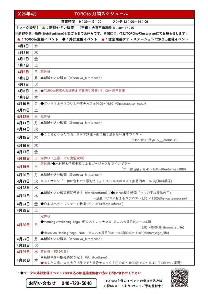 4月のTOROtoスケジュール🌸